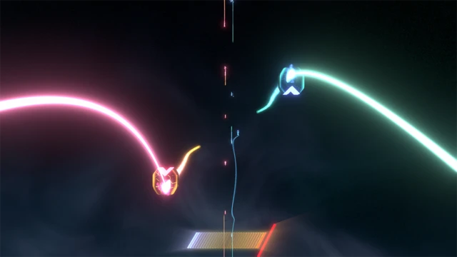 In Dezzibels, you strike distant notes using energy tethers, giving them space to perform deceptive movements that will challenge your sense of rhythm. You must stay sharp to interpret these visual gimmicks as every level is a test of reading ability and timing!