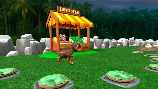 In Gaming Mode, discover seven mystery eggs, touch them to hatch, and care for your dinos by feeding, petting, and filling their Food and Happiness bars. Fully cared-for dinosaurs grow into adults and reward you with collectible cards, which can be tapped to bring them to life in 3D.