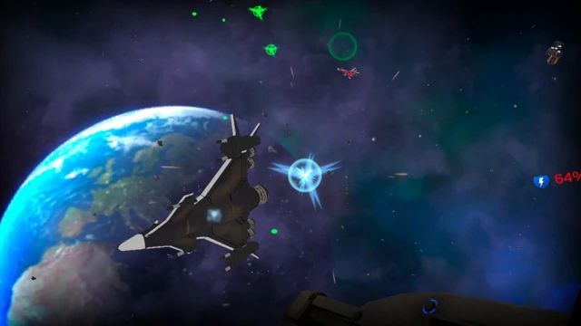 Experience immersive 360° combat as enemies attack from every direction. Move, aim, and shoot using dual-wield blasters, laser rifles, or rapid-fire cannons. Each wave increases in speed and intensity, pushing your reflexes and accuracy to the limit. Destroy swarms of small enemy ships, dodge incoming fire, and unleash heavy damage against massive boss-type motherships.