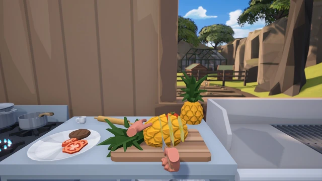Isle of Food is a VR cooking simulator and adventure set on a tropical island, where every ingredient begins with open-world exploration. Hunt, fish, gather and grow what you need, then prepare each dish with natural hands-on VR interactions. What you bring back from the island shapes your menu — and drives your restaurant toward a legendary 7-star rating.