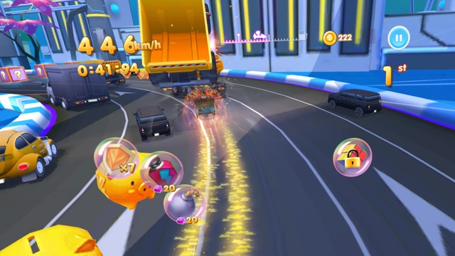 Kart Combat Racing brings classic arcade racing together with explosive combat and chaotic fun. Jump into high-speed races across vibrant tracks filled with traffic, obstacles, shortcuts, and surprise power-ups. Every race is unpredictable — one moment you’re drifting through a tight corner, the next you’re launching rockets or activating boosts to escape danger.