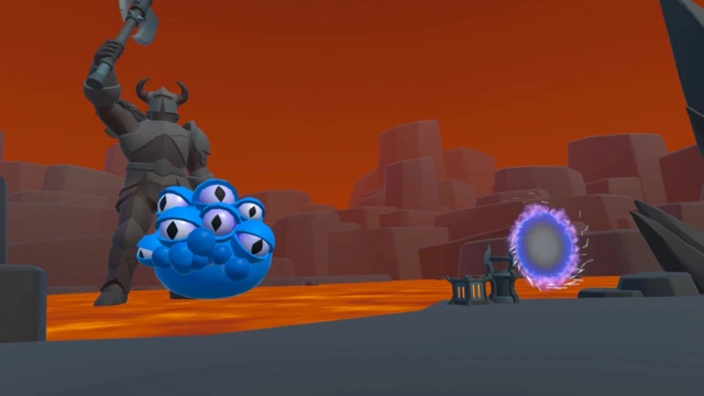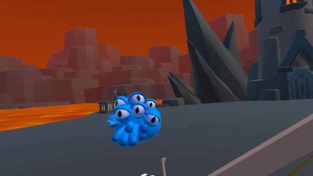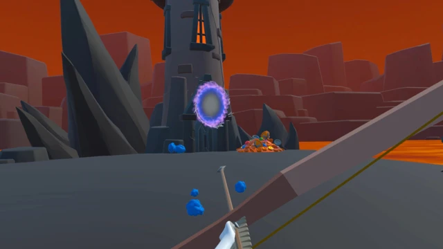 Step into the heat of battle in this fast-paced VR archery wave shooter. Armed with a bow, you'll face relentless waves of bizarre multi-eyed slimes surging across a volcanic landscape dominated by a looming dark tower.