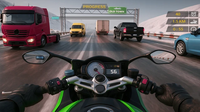 This Game is more than just a bike racing game. It is a game that will make you feel the thrill of moto riding on the highway. It is a game that will challenge you to improve your skills and become the best m