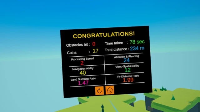 In Sky Land Quest, players explore immersive environments by walking and flying, collecting coins, avoiding traps, and discovering hidden treasures. This game evaluates key cognitive abilities such as processing speed, attention & planning, navigation ability, and visuospatial skills.