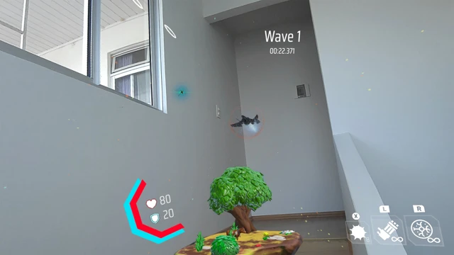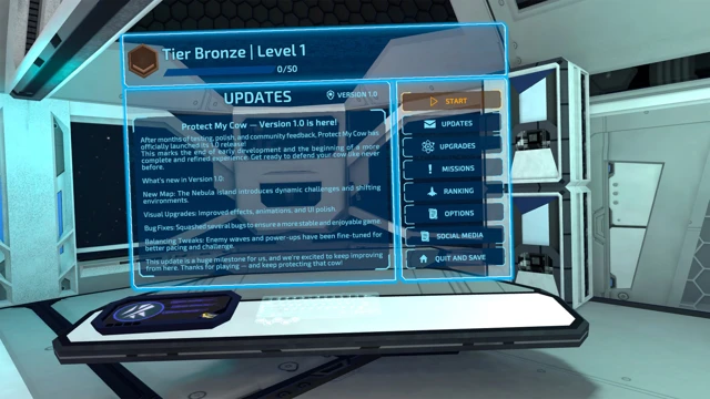 Protect My Cow is an arcade roguelike developed for virtual reality (VR) and mixed reality (MR). You pilot a ship that moves freely across an island, shooting down enemies to stop an alien invasion. Your one and only mission: protect your cows from being abducted.
