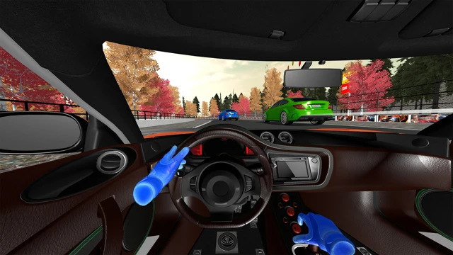 Immersive VR Cockpit: Feel the vibration of the engine and the tension of the steering wheel with a detailed first-person interior view and interactive VR hands.
