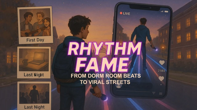 Flow-state pacing + story replay: intensity follows the music to keep you “in the zone,” through a connected song story from college dorm music group to world-tour selection—built for quick sessions, repeat runs, and constant improvement.