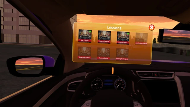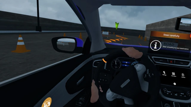 Designed as a safe and judgment-free environment, Road Ready VR allows players to learn essential driving skills—such as steering, braking, acceleration, reversing, turning, and parking—through structured lessons and realistic driving scenarios. Players can practice at their own pace, repeat lessons as needed, and gradually build muscle memory without the stress or risk of real-world traffic.