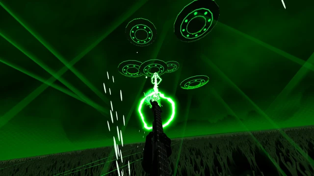 Get ready for the event of the century! The aliens have arrived and are trying to invade the planet, but here in ROCK INVASION VR: the show must go on, no matter what. Immerse yourself in the most incredible concert of the decade, where you'll be the legendary guitarist defending the stage at guitar-point. With vibrant graphics, explosive gameplay and an irreverent touch, you'll face an invasion of UFOs while proving that at this concert, you call the shots. Release control, hit everything that comes your way and let the power of rock flood every second!