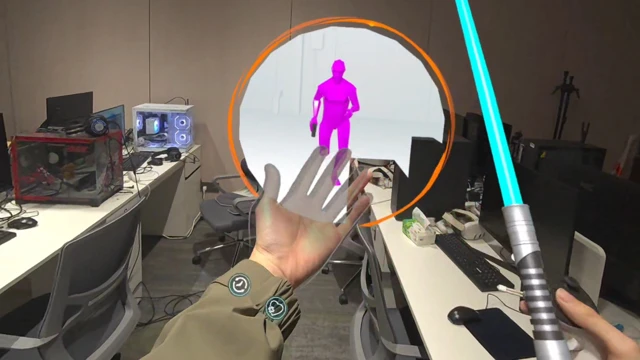 This game combines the player's environment with the gaming experience through MR technology. Enemies will emerge from the time rifts around the player and shoot bullets at the player. The player needs to observe the enemy's attacks and use the weapons in their hands to bounce back the enemy's bullets or swing the weapons to attack the enemy. When the player stops moving, time will also stop.