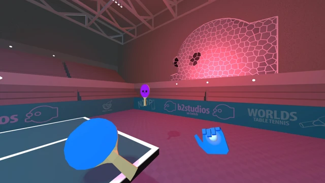 The app features a lightweight table tennis environment, which also accounts for less skilled players through the aim-assist feature.