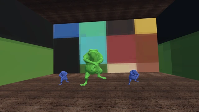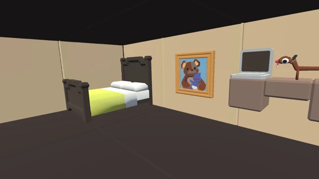 Explore rooms using a magic elevator, Find hidden easter eggs, Get weirdly confused by dancing frogs, Customize your body, Laugh at strange things, And have fun!