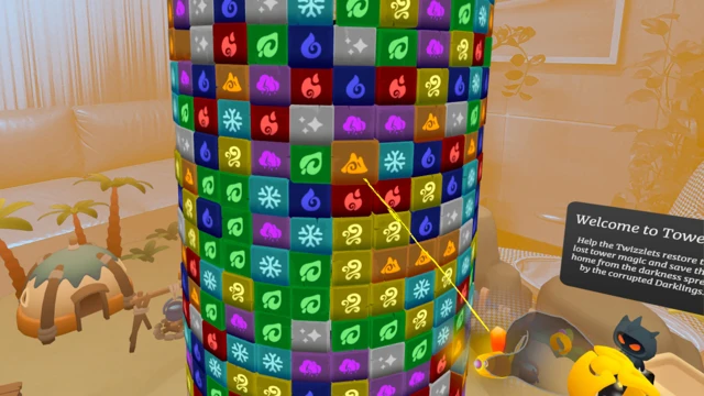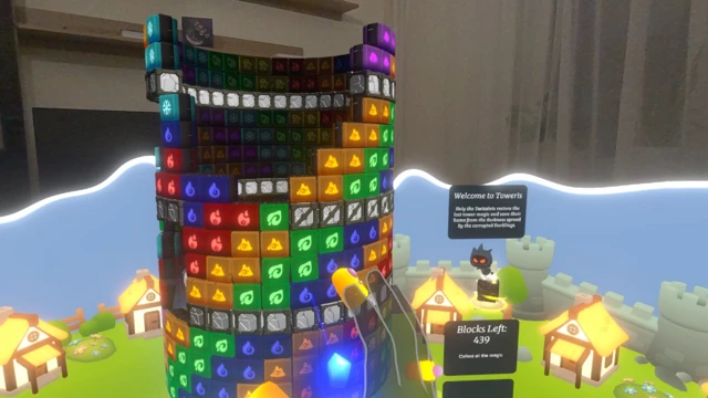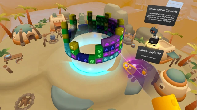 Toweris is designed specifically for Virtual Reality, with natural hand interactions that make rotating and matching feel direct and effortless.