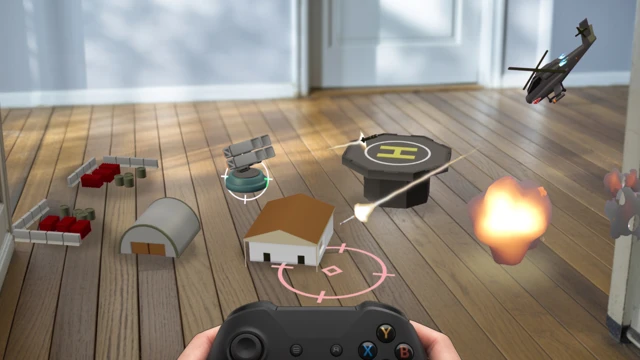 Play using your house as the game level* or on one of our tabletop battle playsets. It's the ultimate casual mixed reality shoot-em' up!