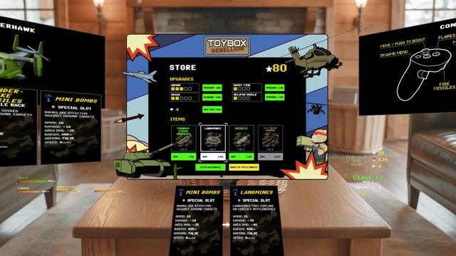 Suit up, pilot! Fly your heavily armed attack chopper through your living room, as you fight waves of tanks, toy soliders and elite commando teddy bears. Power up your chopper with new guns, missiles and flares as you fight to defeat the evil Bone Mage, his tyranical ally Crystalicus and their toybox army.