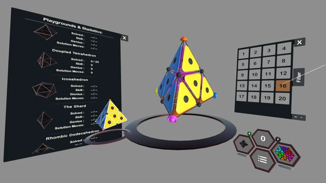 The puzzle surfaces may be flat or folded around polyhedral forms, yet the underlying structure remains the same: a continuous triangular grid where every move follows clear geometric rules.
