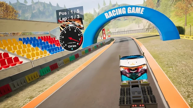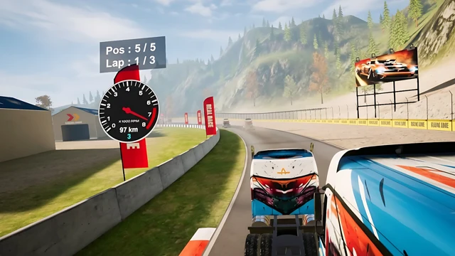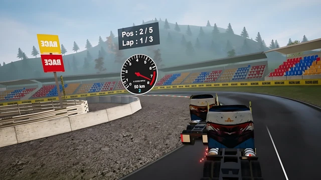 Track Info HUD: Keep track of your lap times, speed (RPM), and position with a clear heads-up display.