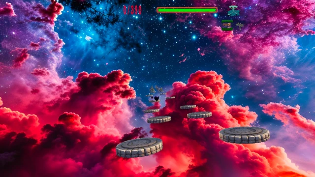 UFO Spaceboards VR is a high‑velocity VR action game that blends arcade skateboarding, portal puzzles, and dynamic level generation into a single, relentless run through open space. You begin every session suspended above a giant, dark roadway that cuts through a cosmic void. A distant planet rotates beneath you, a reminder of scale and speed as you drop into motion. From the first second, the game asks you to balance momentum, precision, and creativity. It is not a static course; it is a living system that assembles the track in front of you and clears it behind, shaping a continuous ride that feels fresh every time.