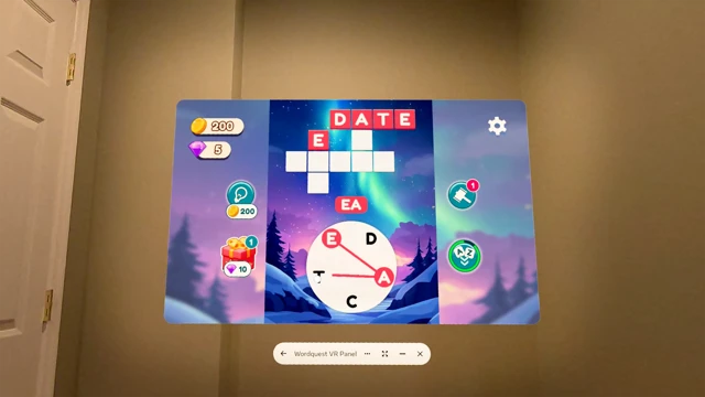 Wordquest – VR Panel lets you enjoy a calm and satisfying word puzzle without pulling you away from what you are already doing in VR. Play at your own pace, for a few minutes or longer sessions, while keeping other content within easy reach.