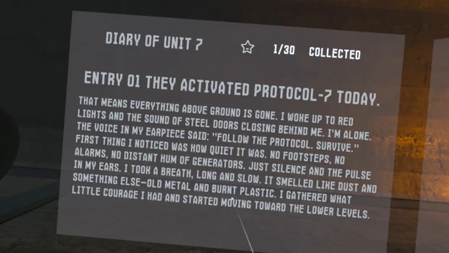 📖 Uncover the Story, One Page at a Time. Scattered throughout the ruins are fragments of journal entries — cryptic, personal, and chilling. Each piece brings you closer to the truth of what happened, and why the world above is silent.